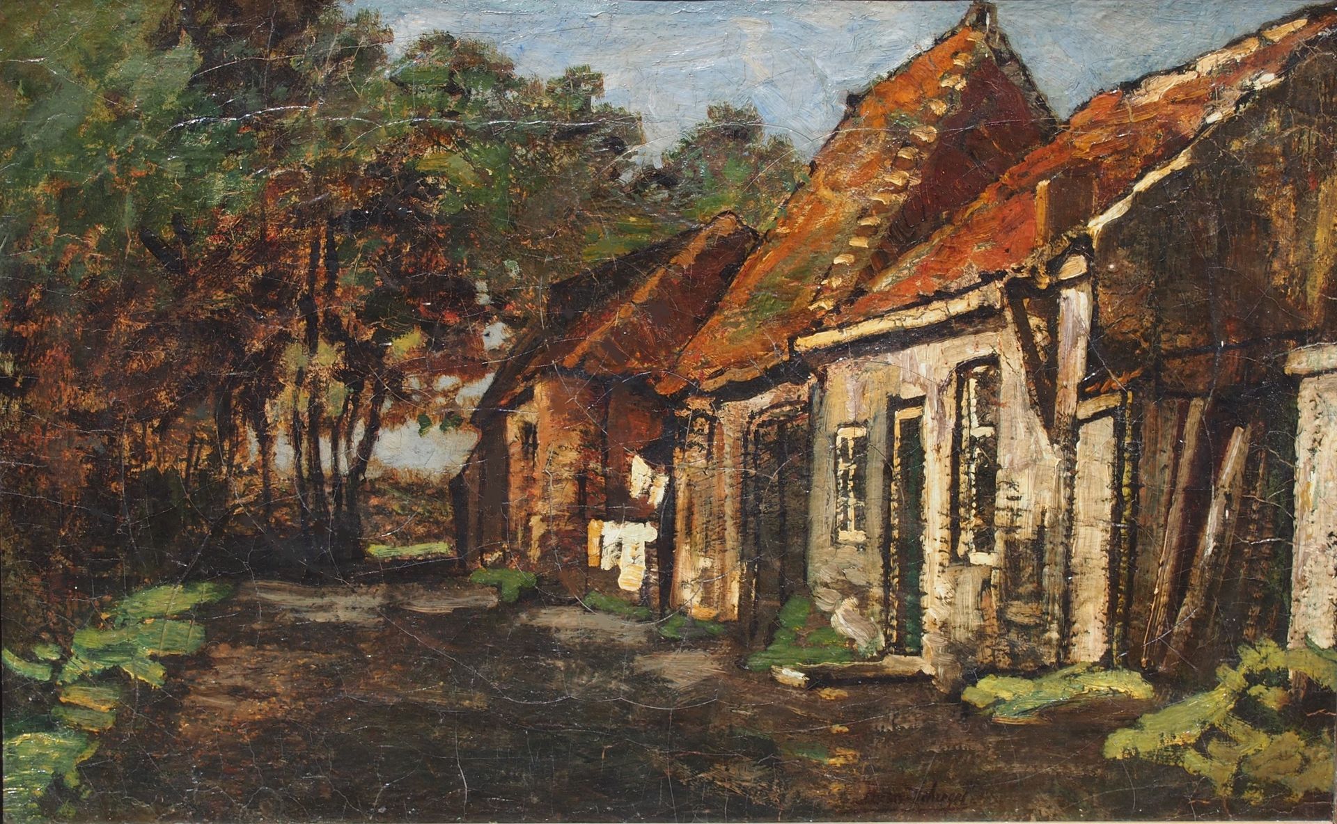 It is in this period that the beautiful work, auctioned by AAG Auctioneers, is produced, which Cornelis Veth wrote about in 1930: 'the farmhouse, with the whitewashed wall, the flower pots in front of the windows, the clogs waiting in such a natural position on an old faded rug, laid outside, the typical blue of the wood, gives a painting, whose intimate thoroughness one looks at with pleasure'.