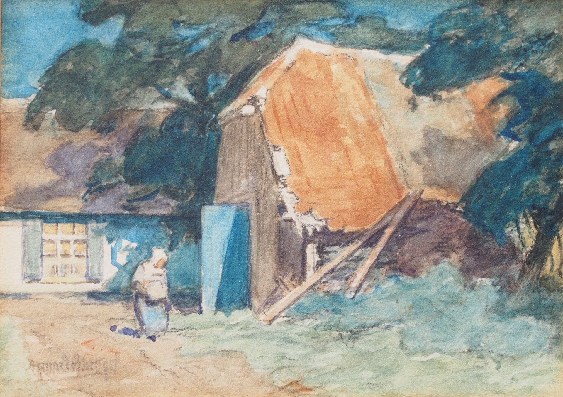 Bernard Schregel's artistic oeuvre encompasses a wide range of themes and techniques, reflected in his watercolours, etchings, paintings, and drawings. His works demonstrate his deep connection to nature and everyday life. Schregel's style was influenced by the Hague School, known for its realistic and sometimes moody portrayal of the Dutch landscape. He excelled in capturing light effects, particularly evident in his paintings of landscapes and farmhouses and estates. His work, appreciated for its technical skill and sense of composition, evolved over the years, developing his own unique expression. Schregel painted various subjects in both oil and watercolour, with the latter often so elaborated that it cannot be considered a mere study.