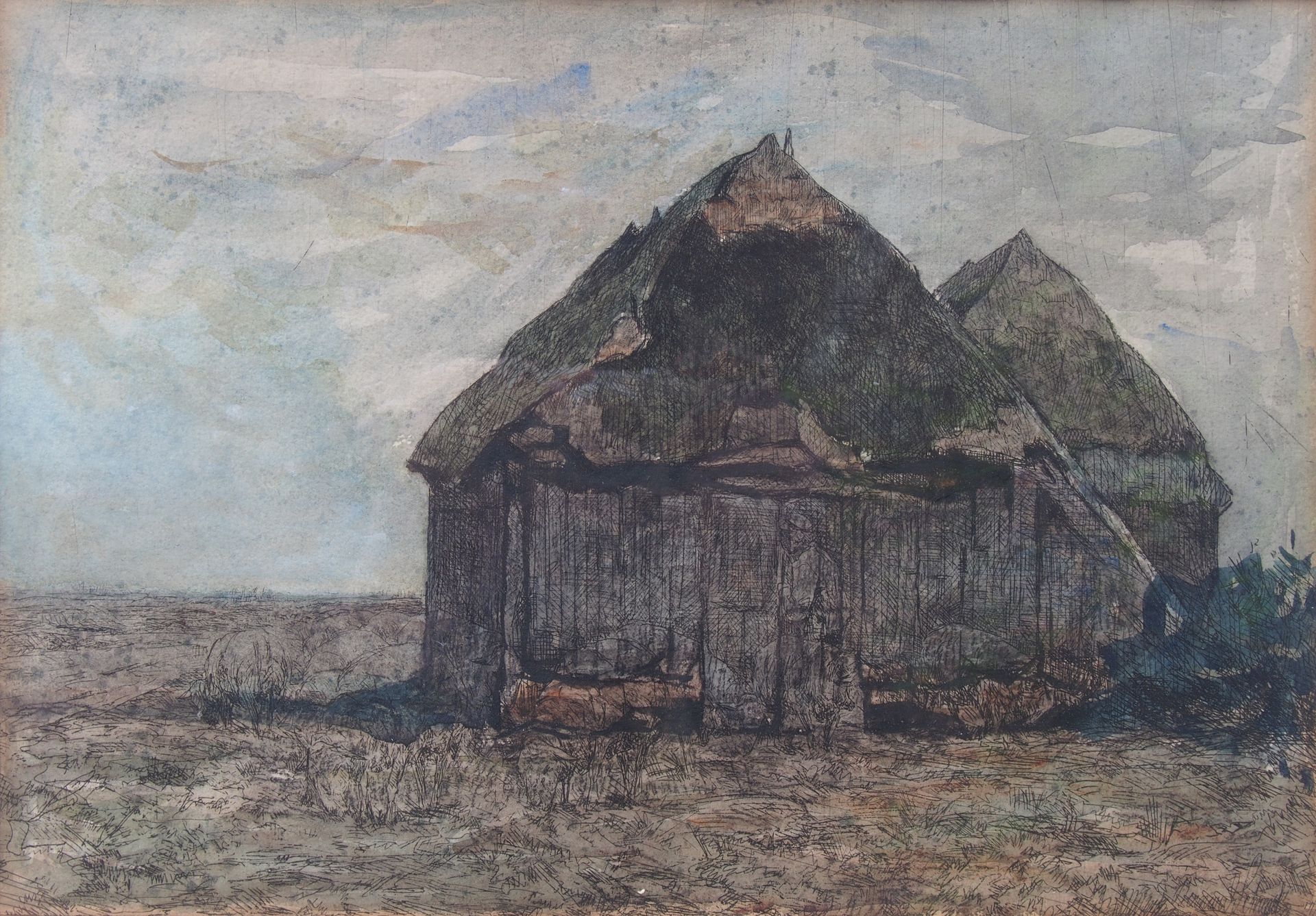 Schregel's etchings are less known, but he also showed great skill in this medium. He often applied multiple techniques, as the etchings are enlivened with touches of watercolour paint. Particularly noteworthy is the etching of 'the little bridge', possibly serving as a study for the oil painting with this title, but also his depiction of the sheepfold, in which an observant viewer can recognize sheep and a shepherd, captivates the imagination. The level of detail and the atmosphere created by the fine lines of ink and carefully applied colour touches are of a high standard.