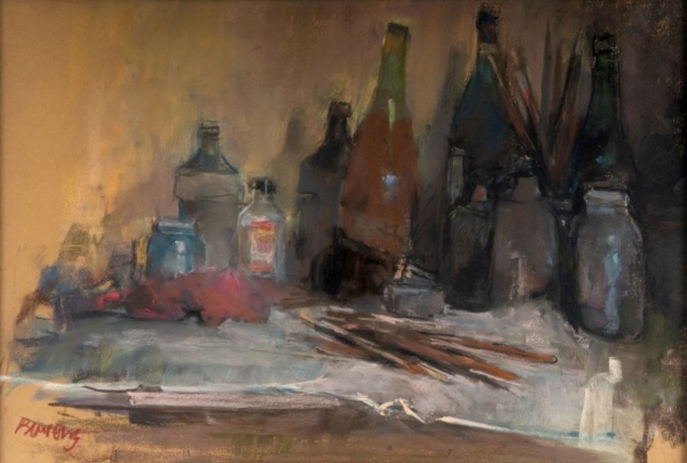 Pastelkrijt op papier, gesigneerd linksonder, afmeting: 39.5x58.5 cm,
