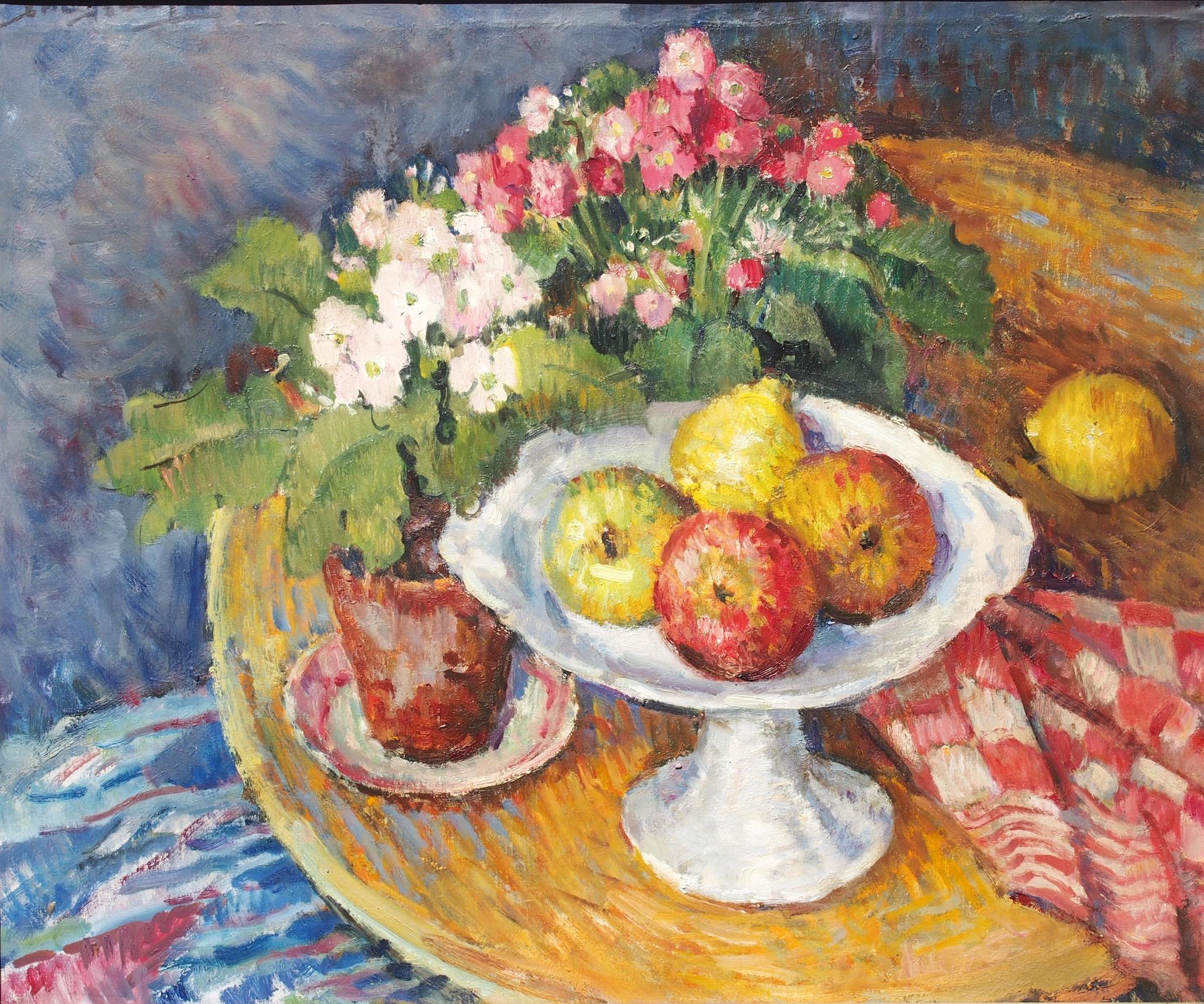 Olieverf op paneel van een Oostindische kers, afmeting 42,5 x 33,5 cm.