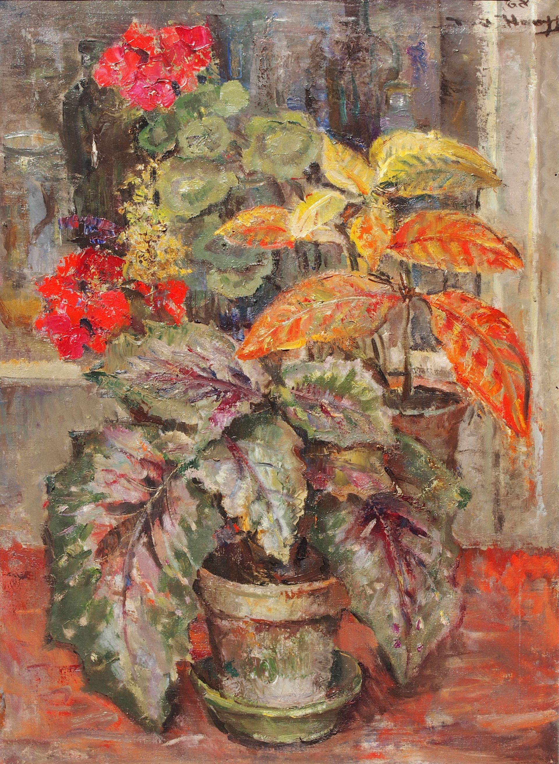 De keuze voor het kozijn als element in de stillevens voegt een diepte en perspectief toe dat de toeschouwer het gevoel geeft door een venster naar een andere wereld te kijken. Haar techniek hier, met fijne korte penseelstreken en aandacht voor schaduw en lichtval, benadrukt haar impressionistische invloeden.