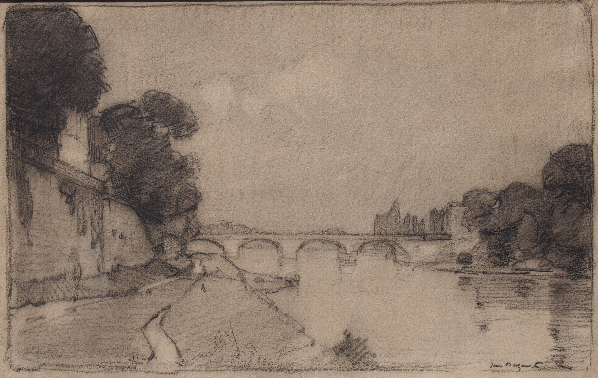 Tekening van de Seine bij Chatou (Frankrijk), afmeting 22x34 cm, gesigneerd rechtsonder. Studie voor een olieverf geveild bij Venduehuis Dick Haut Maastricht, kavel 1547, september 2012.